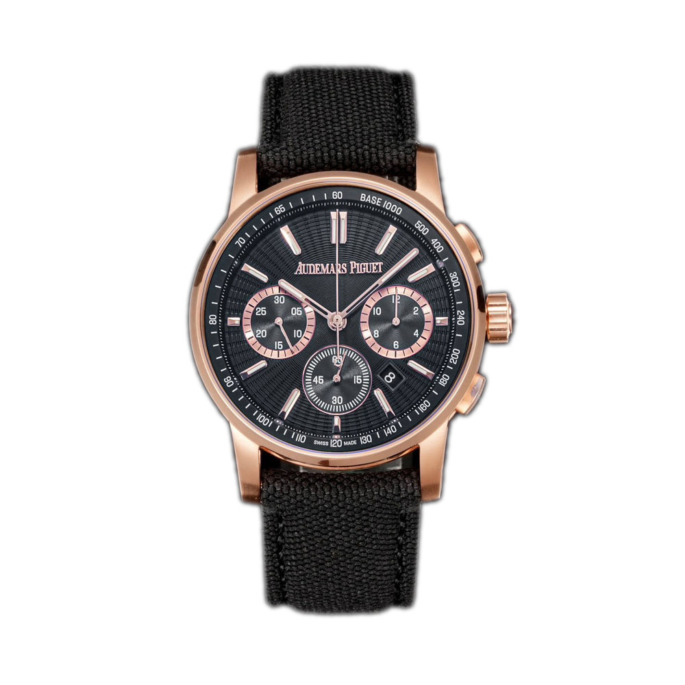 The Audemars Piguet CODE 11.59 26393NR.OO.A002KB.02 is a masterpiece of luxury watchmaking, blending black ceramic and 18k rose gold for a bold yet elegant statement. Designed for men, this timepiece pairs exquisitely with sophisticated attire.