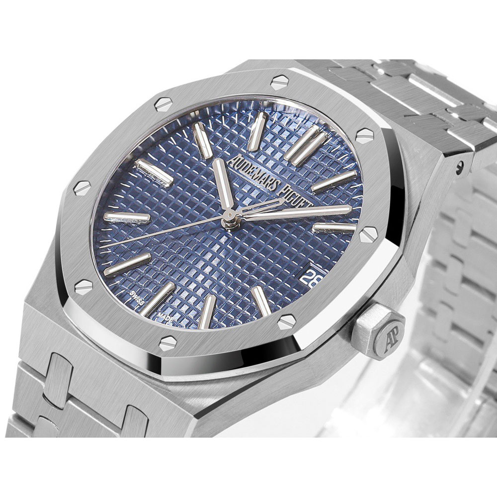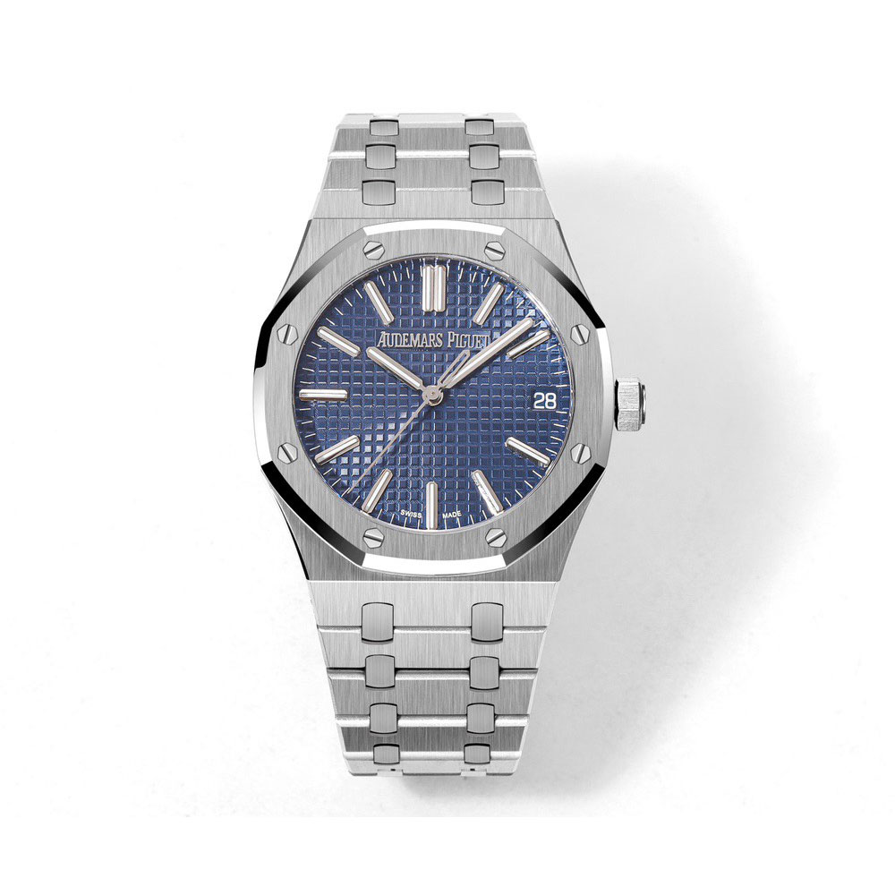 The Audemars Piguet Royal Oak 15510BC.OO.1320BC.04 in striking blue is a sophisticated men's timepiece that demands equally refined attire. Pair this luxurious 18k white gold watch with: