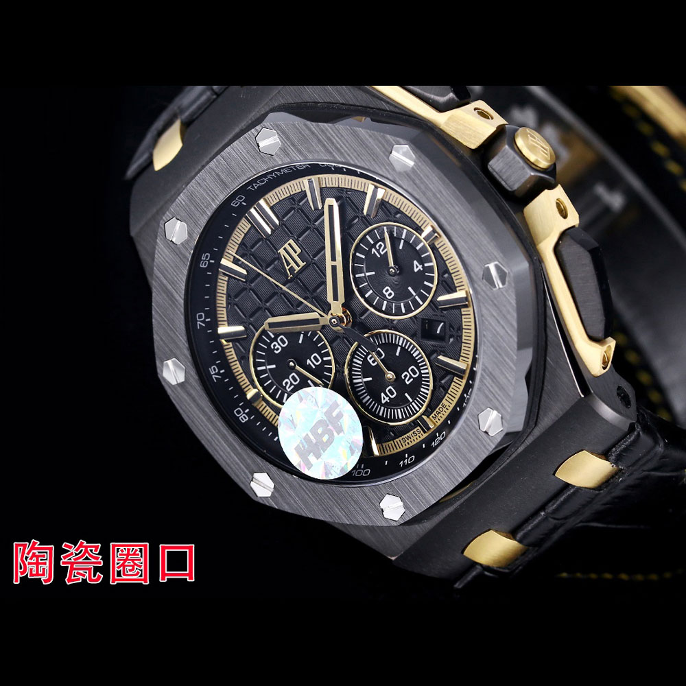 The Audemars Piguet Royal Oak Offshore 26420CE.OO.A127CR.01 is a bold, masculine timepiece crafted from sleek black ceramic, making it a striking accessory for any outfit. Its 43mm case and sporty yet luxurious design complement both casual and formal attire.