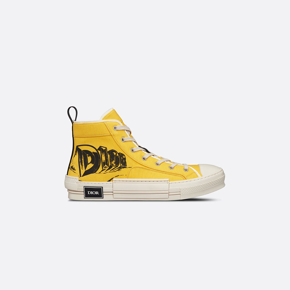 The B23 high-top sneaker is revisited by Kim Jones with a modern version in yellow canvas. Embellished with the graphic AsteroDior signature. Inspired by 1970s space operas and channeling an intergalactic desert universe.