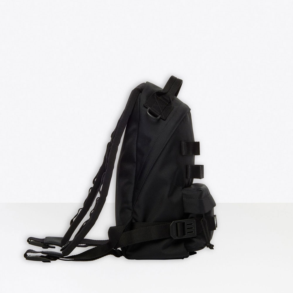 Size:16 x 36 x 24CM L6.3 x H14.1 x W9.4 inch Recycled nylon Backpack One top handle Two hooks Top double-ended zip-fastening closure Adjustable shoulder straps Balenciaga logo patch on front 1 inner zipped Organic cotton canvas lining Wipe with a soft cloth