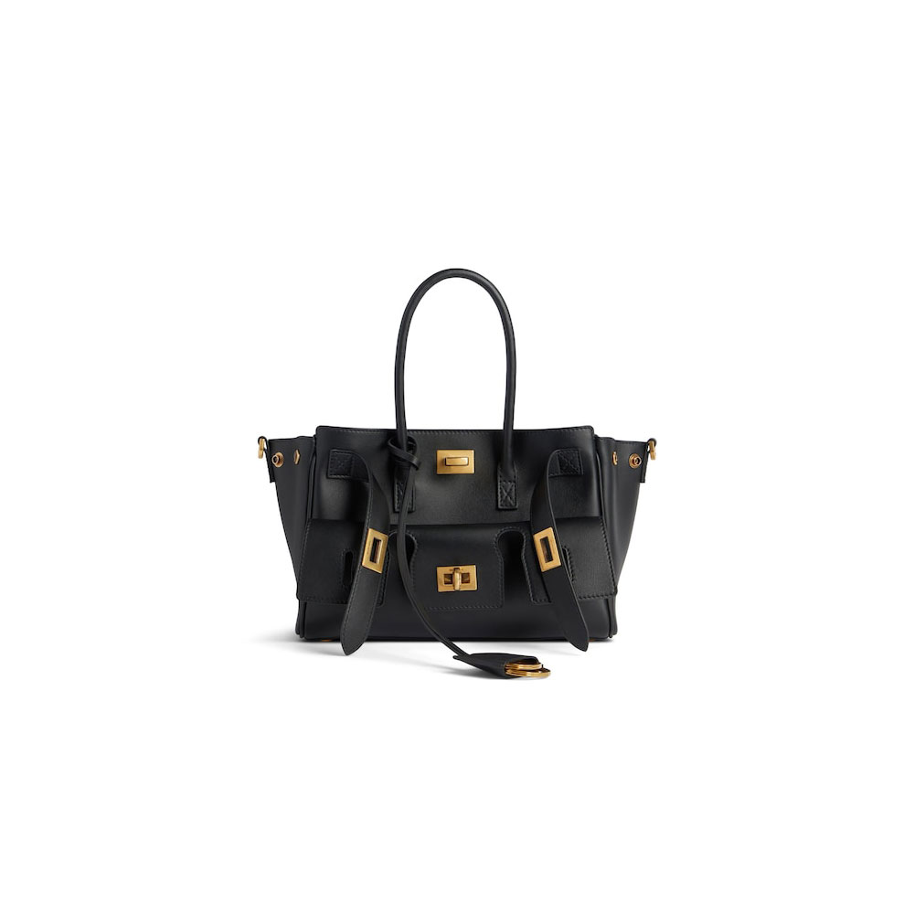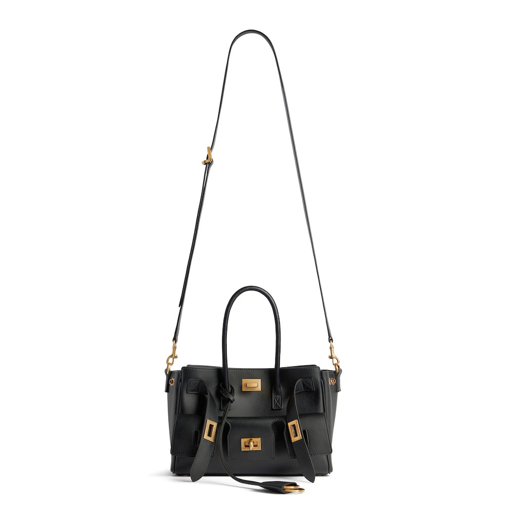 The Balenciaga Bel Air Mini Carry All Bag in Black effortlessly complements a range of women's fashion styles.