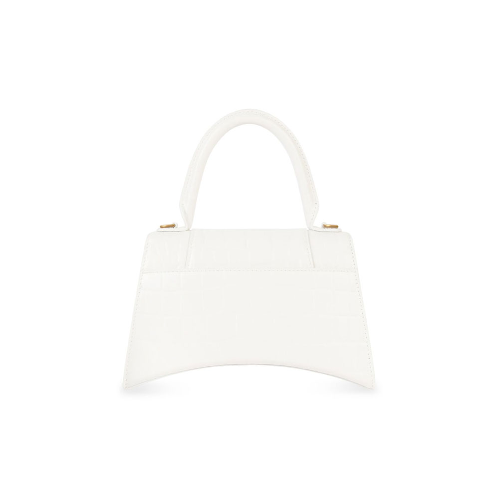 Hourglass Small Handbag in white shiny crocodile embossed calfskin aged gold hardware