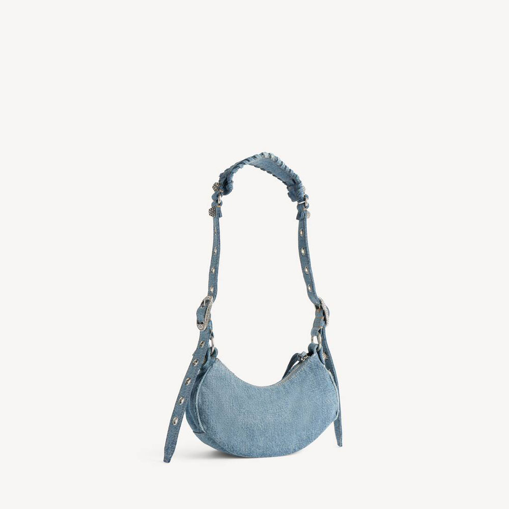 My first Balenciaga bag and Im obsessed! The Le Cagole XS blue denim is stunning??erfect distressed look, luxe rhinestone details, and the heart mirror is adorable. Super functional size, lightweight, and the craftsmanship is unreal.