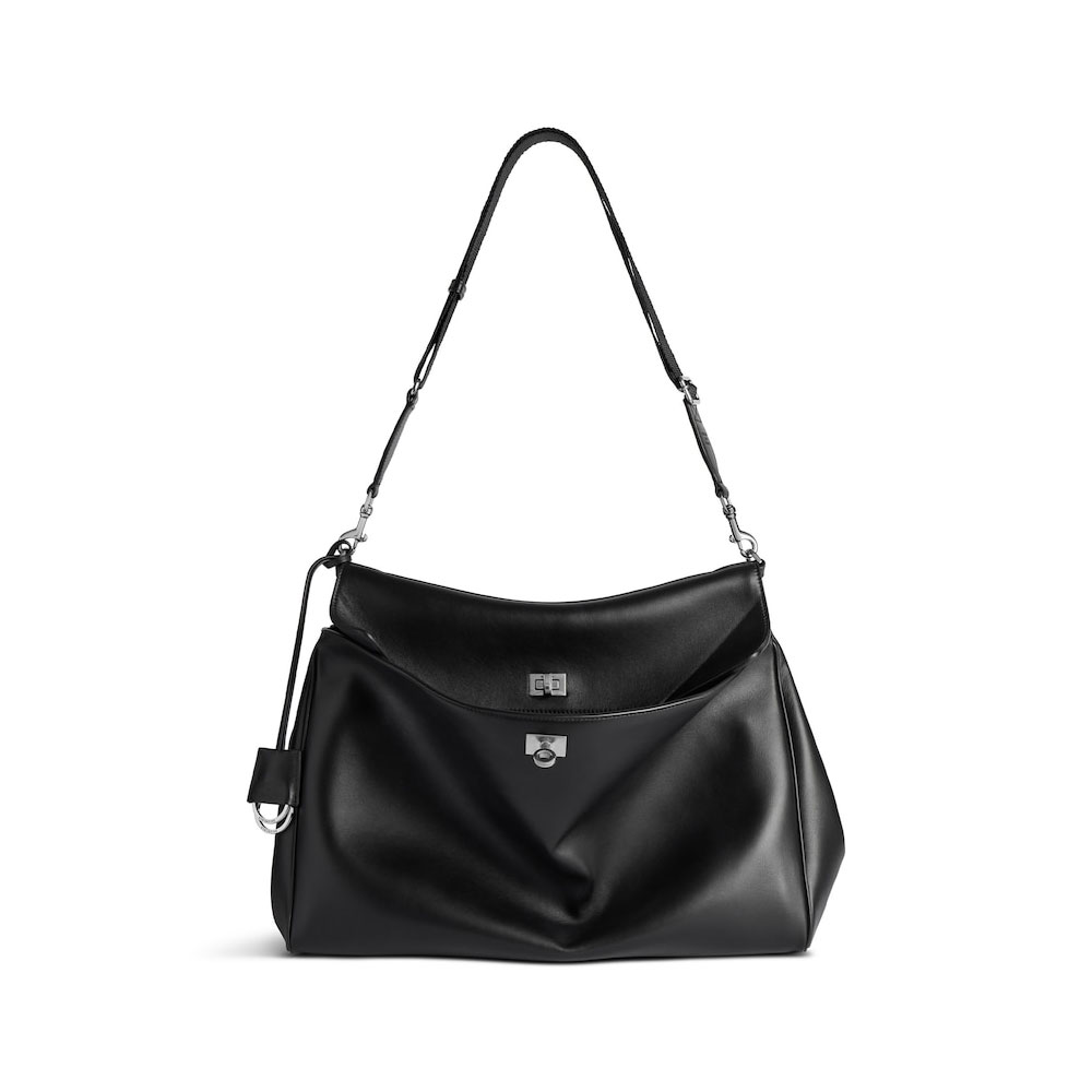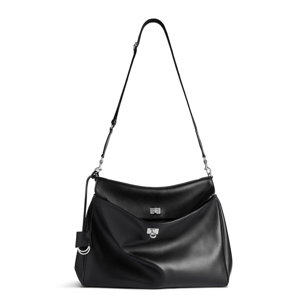 The bold, utilitarian design of the Balenciaga Rodeo Bag in black pairs perfectly with modern menswear. For a streetwear edge, team it with an oversized hoodie, distressed denim jeans, and chunky sneakers-the bag's silver hardware accents will mirror metallic details in jewelry or belt buckles.