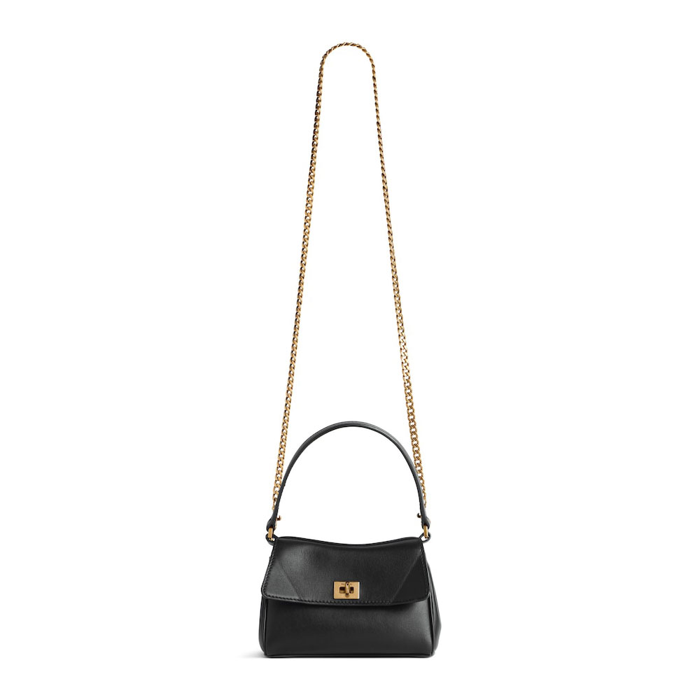 The Balenciaga Rodeo Nano Bag With Chain in Black effortlessly elevates any ensemble. For a chic daytime look, pair this Balenciaga crossbody bag with high-waisted jeans, a tailored blazer, and sleek ankle boots. The compact design complements minimalist outfits while adding a touch of luxury.