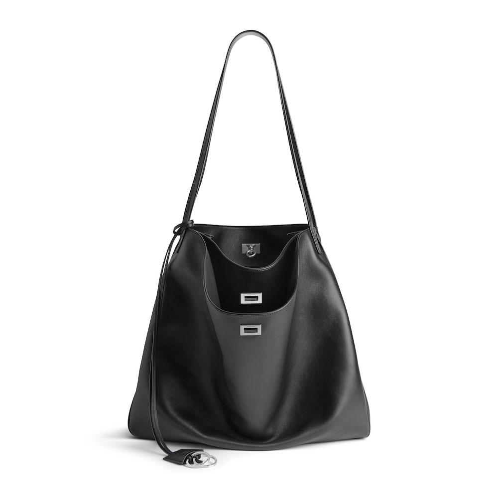 The Balenciaga Rodeo North-South Tote in Black is a versatile men's accessory that pairs effortlessly with urban and casual looks.