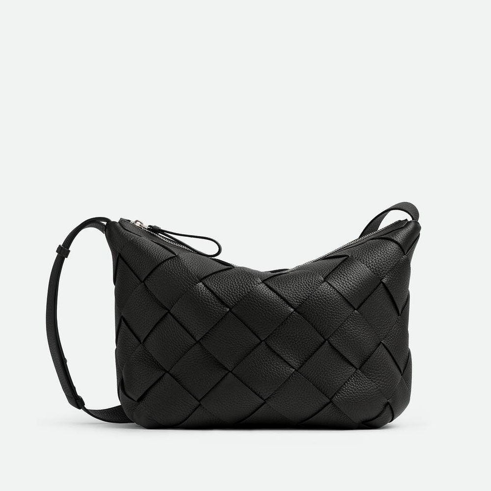 Bottega Veneta Diago Hobo in Black is a versatile men's accessory that pairs effortlessly with various styles. For a sleek urban look, layer a tailored charcoal blazer over a black turtleneck, matched with slim-fit dark denim.