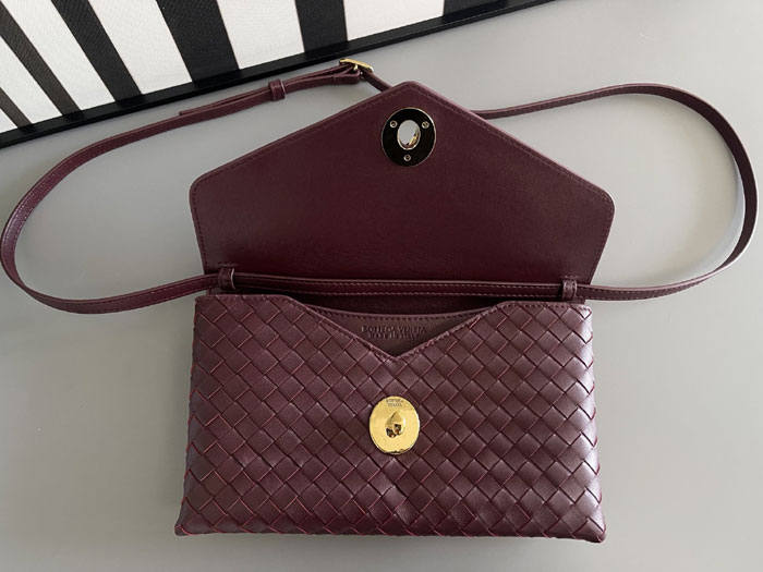 Coordinate with other Bottega Veneta pieces like the bv andiamo bag small for day-to-night versatility. Rich textures like cashmere coats or velvet blazers harmonize beautifully with Barolo's warm undertones, while monochromatic outfits let the clutch's intrecciato leather weave shine as the focal point.
