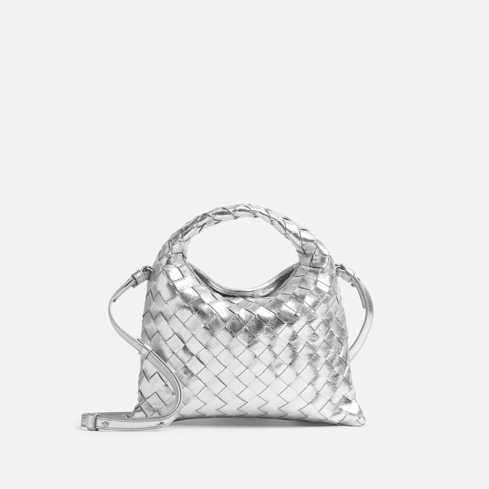 Bottega Veneta Mini Hop Crossbody Bag in Silver is a chic, versatile accessory perfect for elevating any ensemble. Its compact size (W25.5 x H14.5 x D11CM) makes it ideal for pairing with streamlined outfits like tailored blazers, slip dresses, or high-waisted trousers for a polished look.