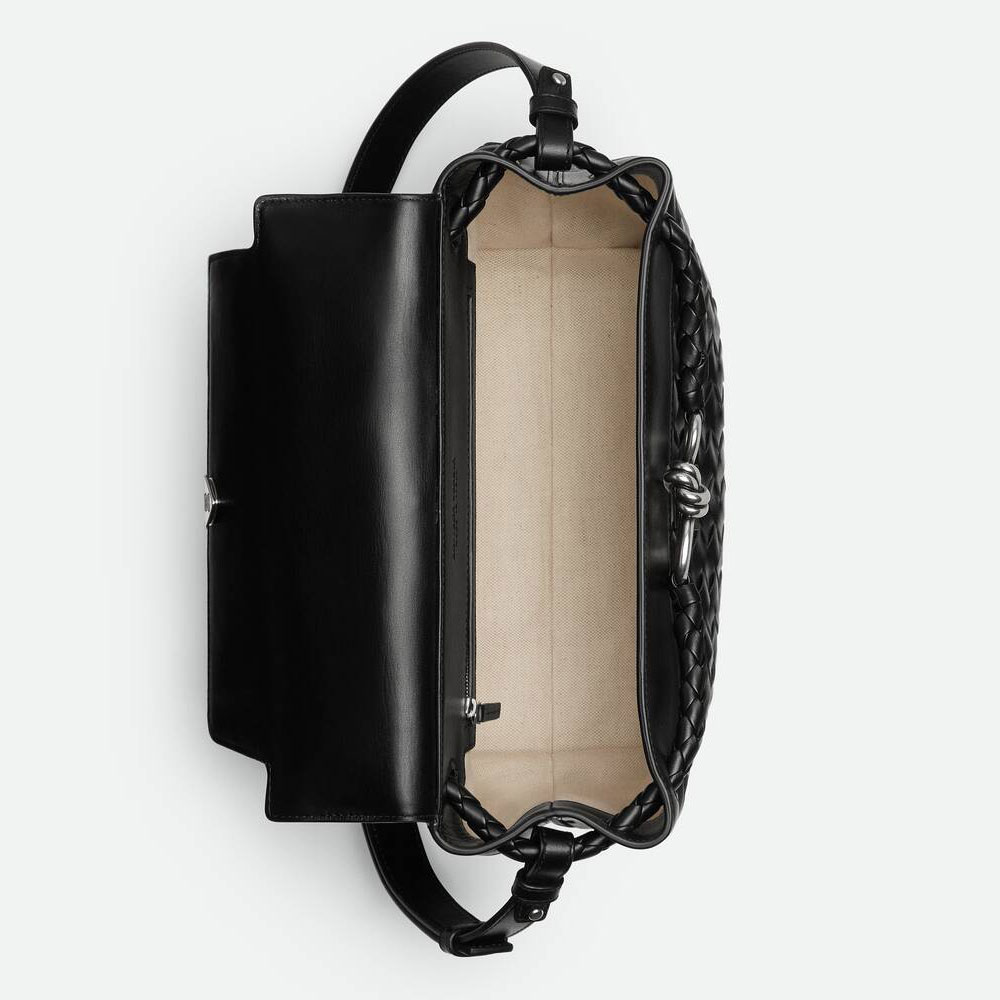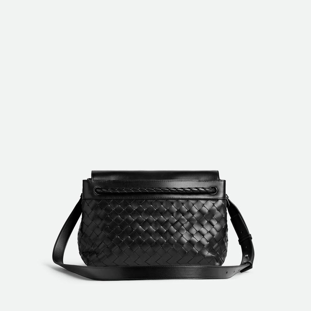 Bottega Veneta Andiamo Bag Small in Black effortlessly elevates men's style with its sleek, minimalist design. Pair this messenger bag with tailored business-casual outfits-think a crisp white shirt, slim-fit trousers, and a structured blazer for polished sophistication.