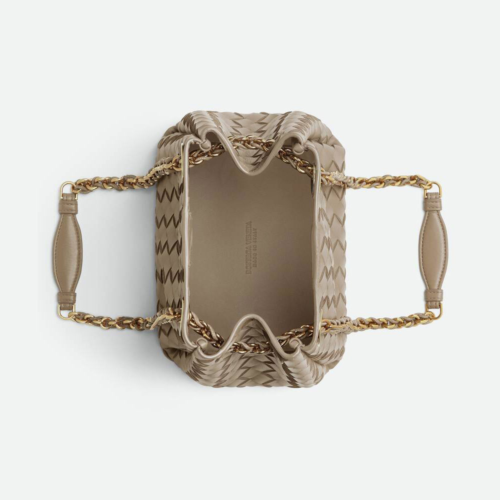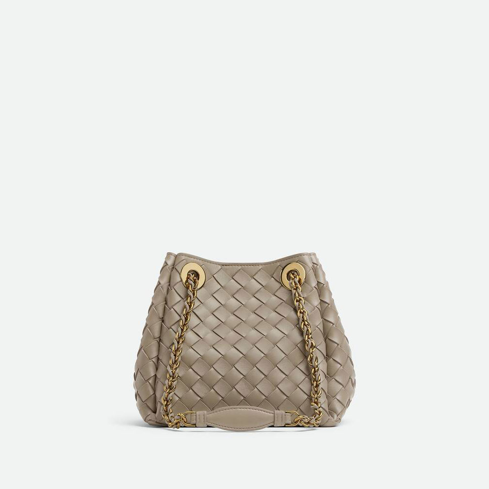 Bottega Veneta Small Parachute Chain in Limestone effortlessly elevates modern feminine styling. Pair this structured, neutral-toned bag with oversized blazers and tailored trousers for a polished office look.