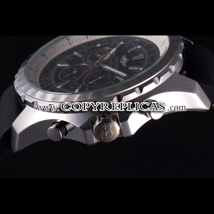 Movement : Kinetic (Automatic) Quality : Japanese Miyota Case : Polished solid stainless steel case Back : Push in polished solid stainless steel back with Breitling engravings Bezel : Brushed stainless steel cutwork bezel Crown : Polished stainless steel main crown with 'B' engraving plus two additional crowns Bracelet : Black rubber strap with fold in clasp Band Type : Rubber Watch Clasp : Security Clasp Glass : Sapphire Crystal Color : Black Dial Color : Black Gender : Men Diameter : 53 x 48 mm Bracelet Length : 184 x 24 mm Case Thickness : 16.5 mm Shipping Size : Small
