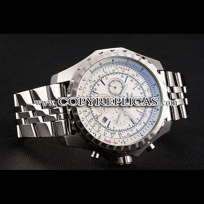 Movement : Kinetic (Automatic) Quality : Japanese Miyota Case : Polished stainless steel case Back : Stainless steel push-in case back with Breitling engravings Bezel : Unidirectional cutwork stainless steel bezel with tachymeter Crown : Stainless steel crown with Breitling logo and two smaller crowns on either side of it Bracelet : Finely linked polished stainless steel bracelet with date code and Breitling engraved push button release fold in clasp Band Type : Stainless Steel Watch Clasp : Security Clasp Glass : Sapphire Crystal Color : Silver Dial Color : Beige Gender : Men Diameter : 53 x 47 mm Bracelet Length : 194 x 24 mm Case Thickness : 15 mm Shipping Size : Small
