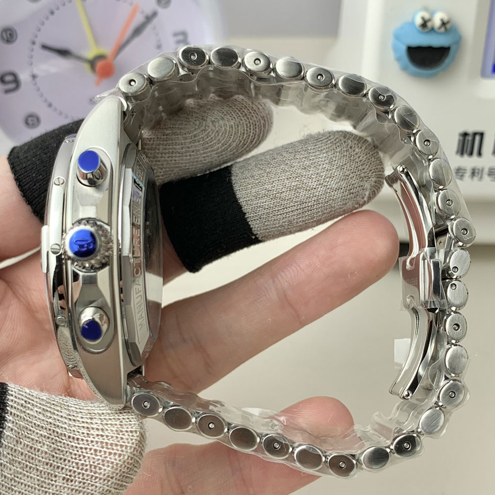 Chronograph: 1/4th second chronograph, 30-minute and 12-hour totalizers.