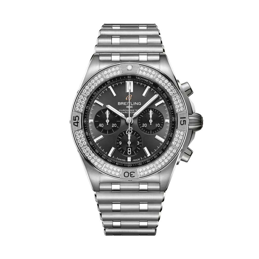 Chronograph: 1/4th second chronograph, 30-minute and 12-hour totalizers.