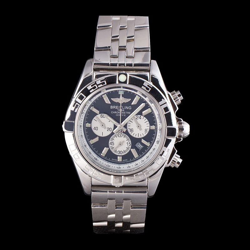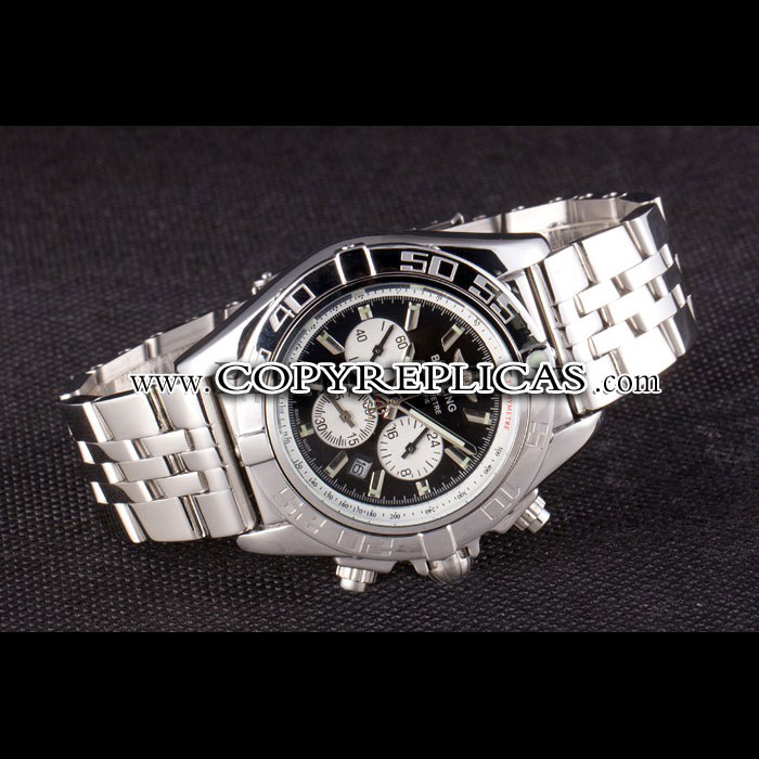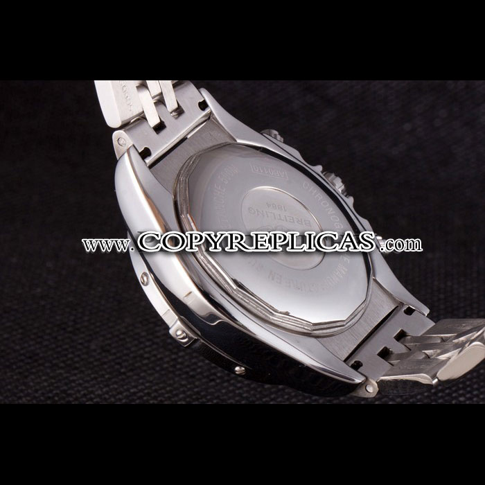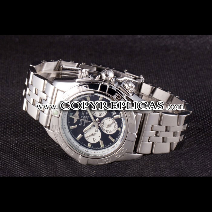 Movement : Quartz (Battery) Quality : Japanese Miyota Case : Solid forged case construction, 440-grade stainless steel. Back : Screw-back, Solid 440-grade stainless steel. Bezel : Solid 440-grade stainless steel. Crown : One piece solid screw-down crown. Bracelet : Solid 440-grade stainless steel band. Each Breitling Chronomat watch displays the engraved Breitling logo, and Swiss-made stainless steel stamps. Band Type : Stainless Steel Watch Clasp : Security Clasp Chronograph : Yes Glass : Sapphire Crystal Color : Silver Dial Color : Black Gender : Men Diameter : 54 x 40 mm Bracelet Length : 190 x 22 mm Case Thickness : 17 mm Shipping Size : Small