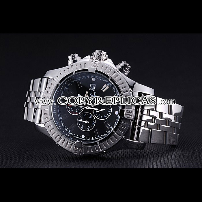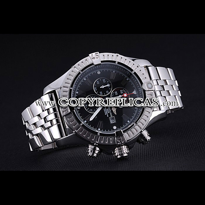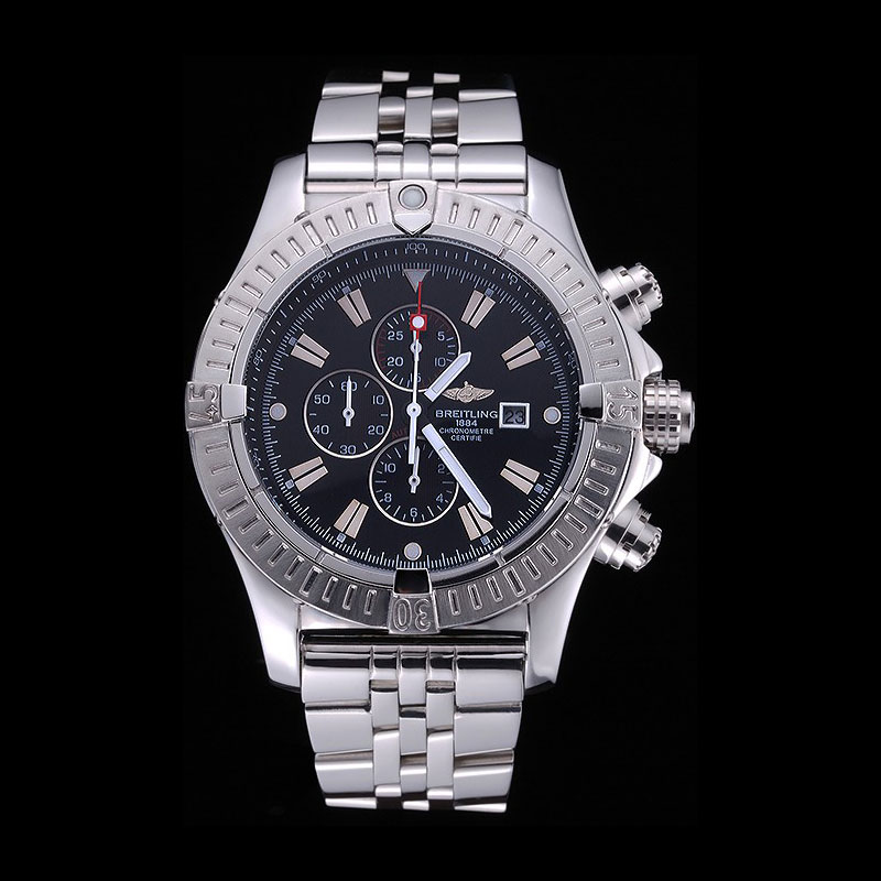 Movement : Quartz (Battery) Quality : Japanese Miyota Case : Polished stainless steel case Back : Polished stainless steel snap-in back with Breitling inscription Bezel : Polished stainless steel bezel with index markers Crown : Breitling logo engraved polished stainless steel cutwork crown with a round cutwork crown on either side Bracelet : Polished stainless steel link bracelet with Breitling 1884 and logo engraved polished stainless steel fold-in push-release clasp Band Type : Stainless Steel Chronograph : Yes Glass : Sapphire Crystal Dial Color : Black Gender : Men Diameter : 59 x 48 mm Bracelet Length : 200 x 24 mm Case Thickness : 18 mm Shipping Size : Small