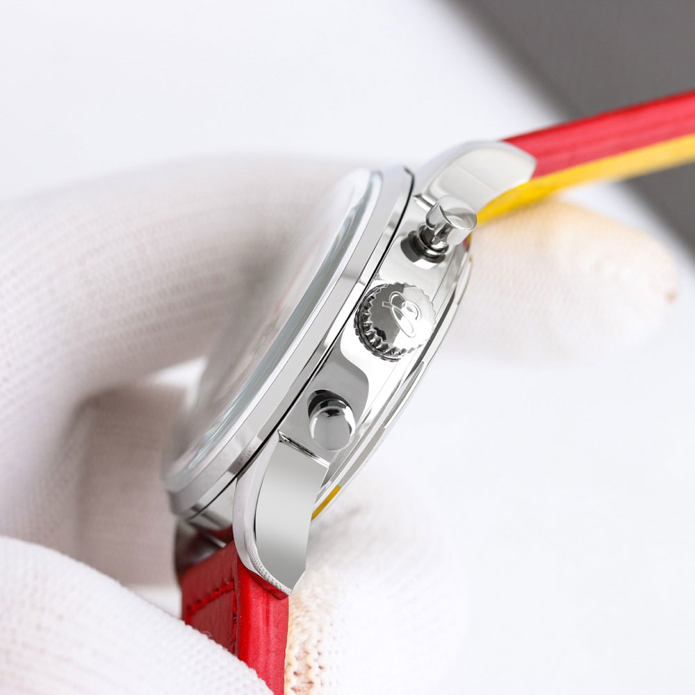 Chronograph: 1/4th second chronograph, 30-minute and 12-hour totalizers.