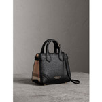 22 x 12 x 17cm/8.7 x 4.7 x 6.7in Min. shoulder strap length: 99.5cm/39.2in Max. shoulder strap length: 109.5cm/43.1in Outer: 100% calf leather Side panels: 100% cotton Trim: 100% calf leather Lining: 100% cotton One interior zip pocket, one interior pouch pocket Detachable, adjustable leather shoulder strap Rolled leather handles Magnetic press-stud closure, press-stud clip on the handles Hand-painted edges Polished metal hardware Embossed Burberry lettering at the front