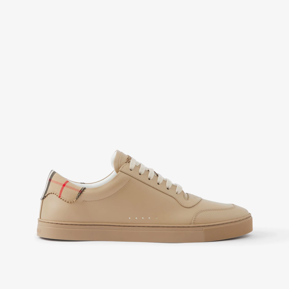 Low-top sneakers in supple leather accented with contrasting Burberry Check cotton panels.