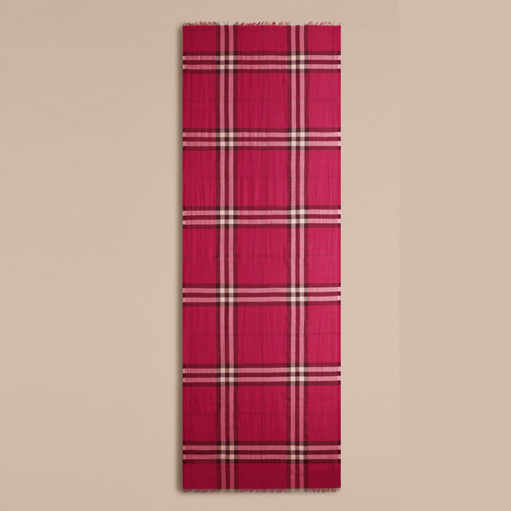Burberry Lightweight Check Wool and Silk Scarf Fuchsia Pink 39960461