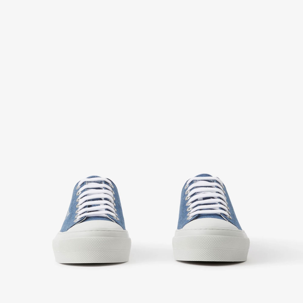 Burberry Logo Print Denim Sneakers in Blue 80708471