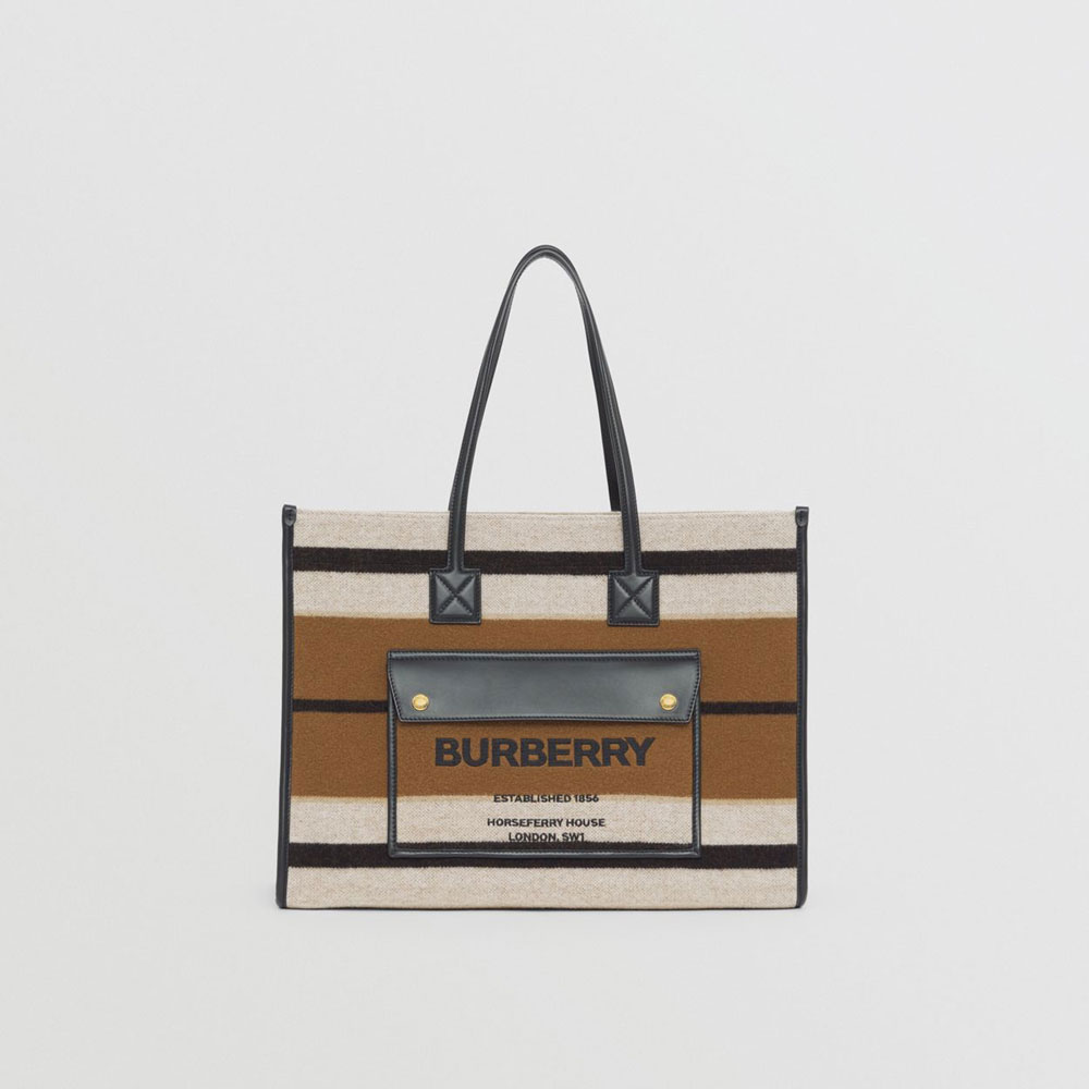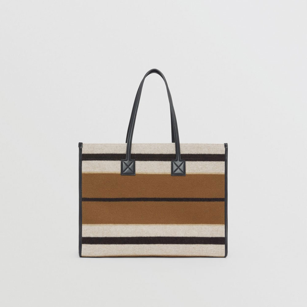 Burberry Medium Striped Wool and Leather Freya Tote 80490661