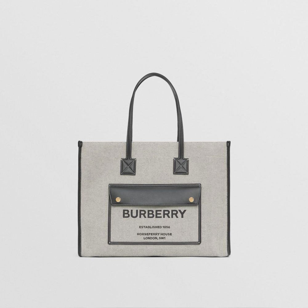 Burberry Medium Two tone Canvas and Leather Freya Tote 80441281