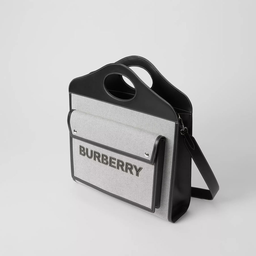 Burberry Medium Two tone Canvas and Leather Pocket Bag 80411131