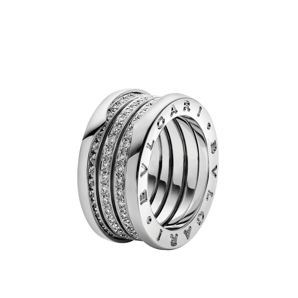 B.zero1 four-band ring in 18 kt white gold. set with pave diamonds on the spiral.