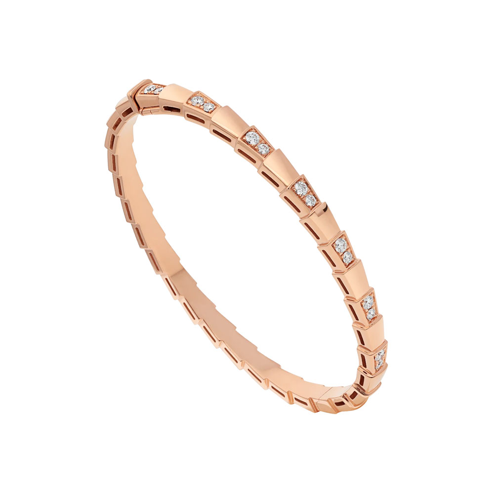 Serpenti Viper 18 kt rose gold bracelet set with demi pave diamonds . (height 4 mm)