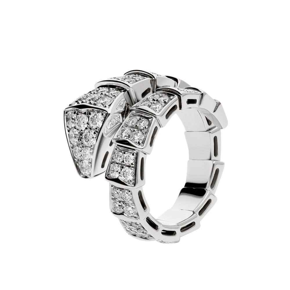 Serpenti Viper one-coil ring in 18 kt white gold. set with full pave diamonds.