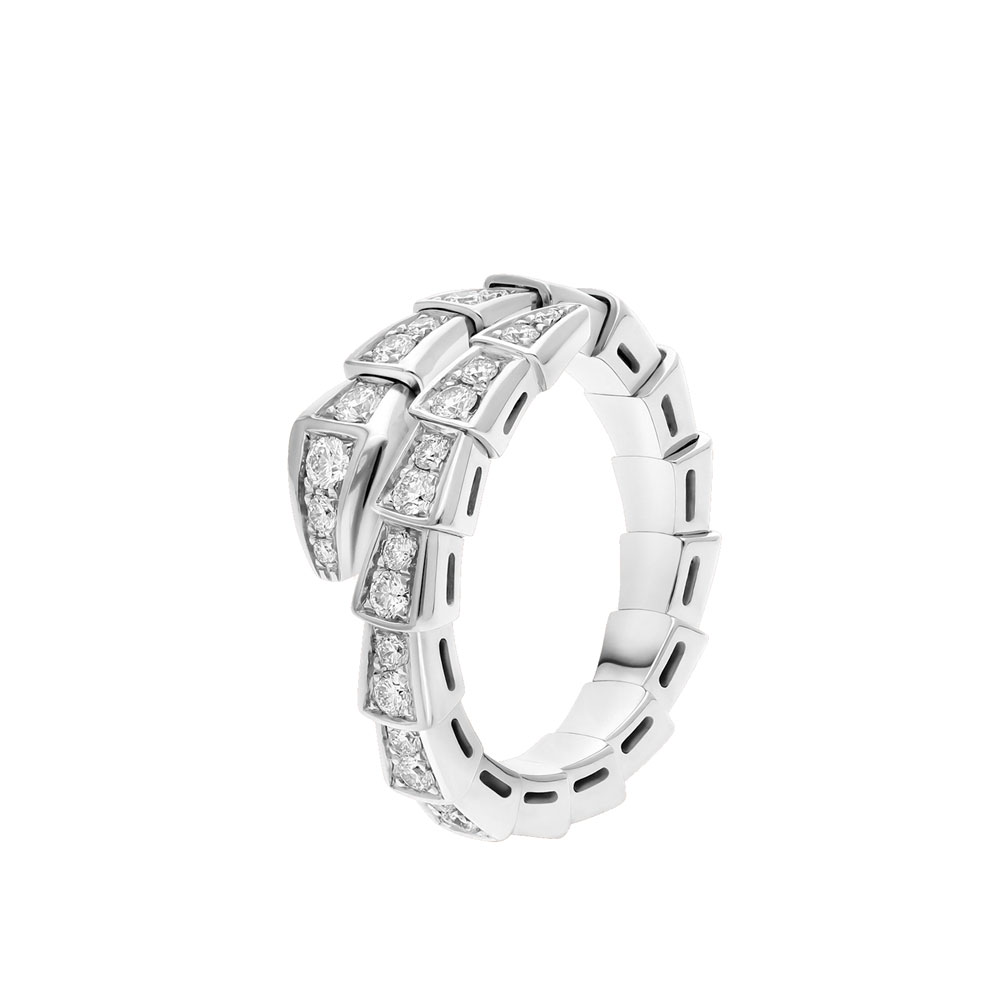 Serpenti Viper 18 kt white gold ring set with pave diamonds.