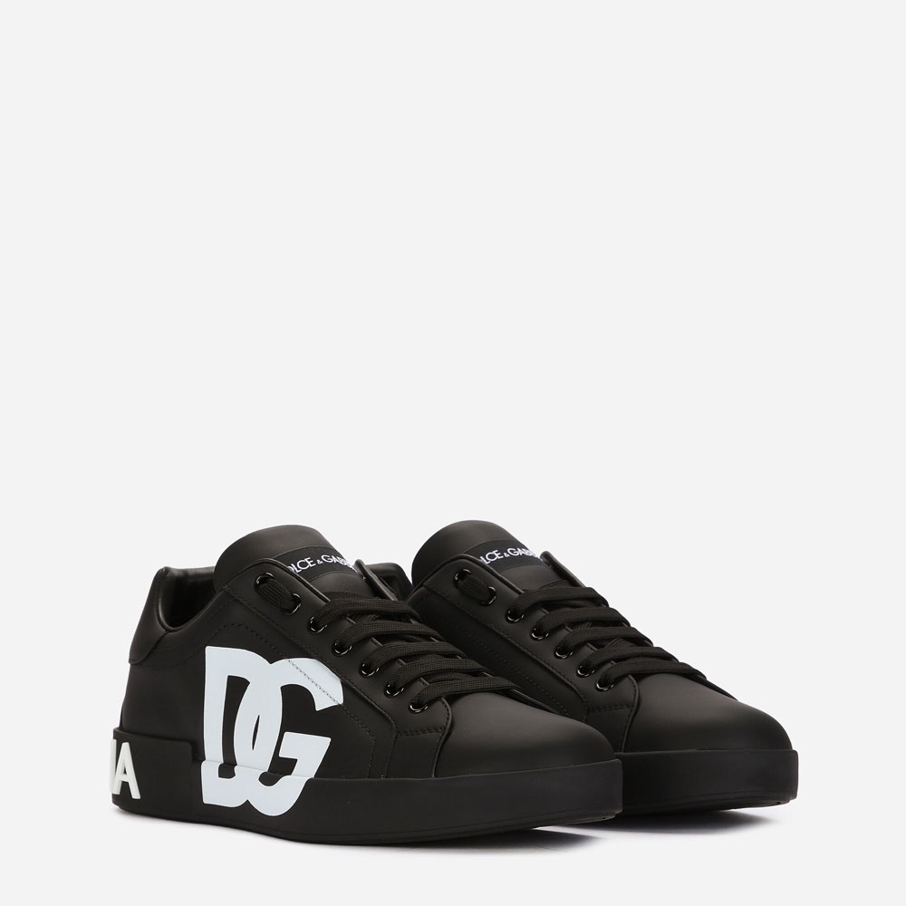 These iconic Portofino sneakers come in calfskin nappa leather. This new version features the contrasting DG logo print on the side and the rear spoiler with micro-injected rubberized logo. The tongue is branded with the Dolce&Gabbana logo.