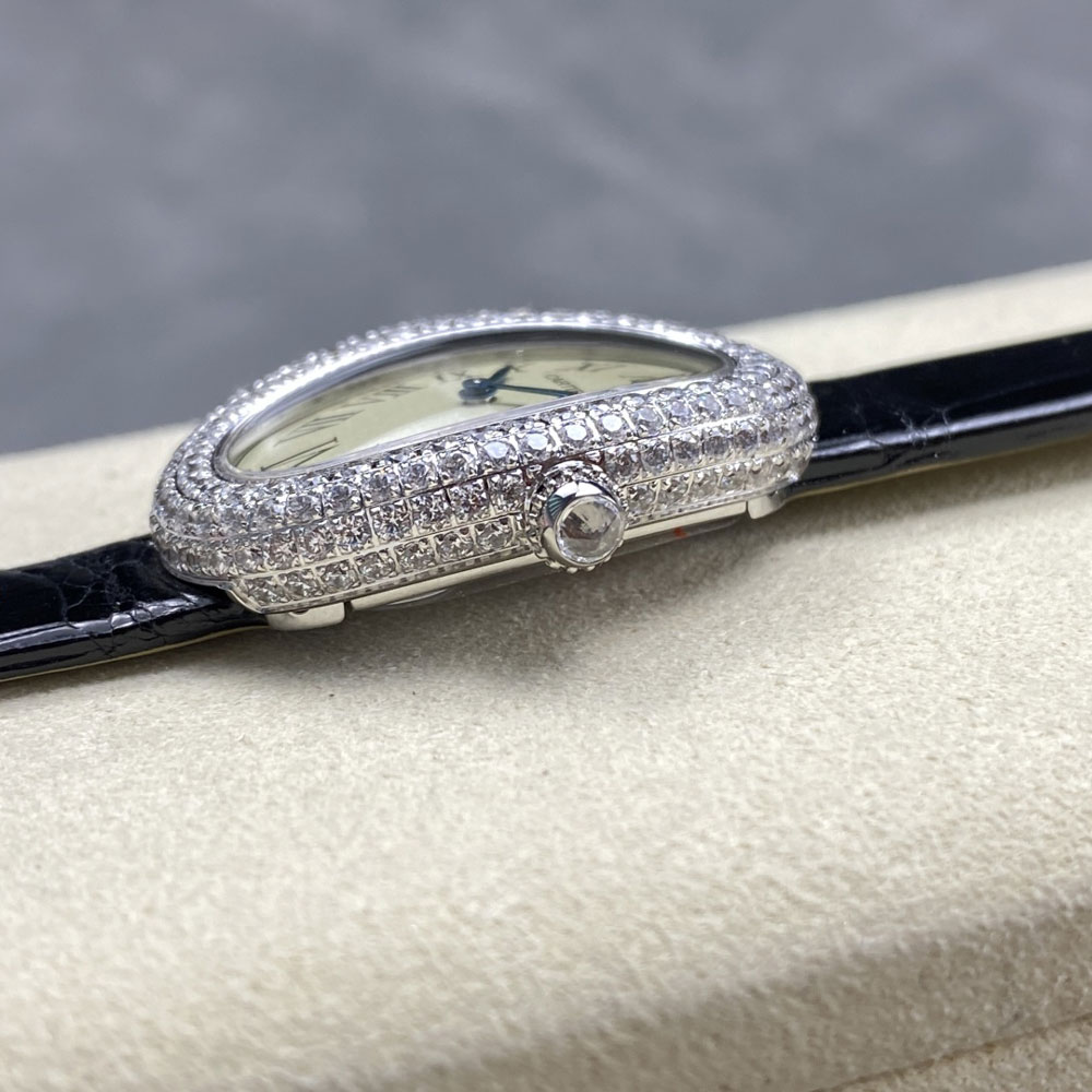 Stunning Cartier Baignoire! The elegant 18k white gold case dazzles with diamonds that catch every light.