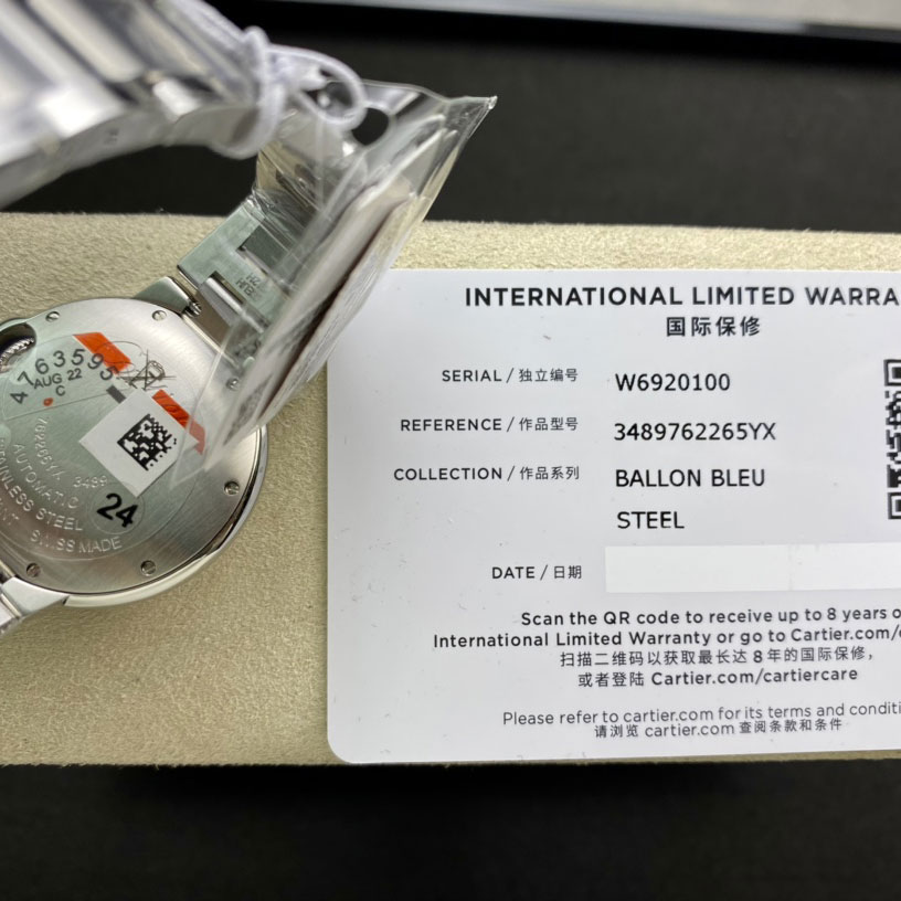 • 5. Cartier Warranty Card with Security Hologram.