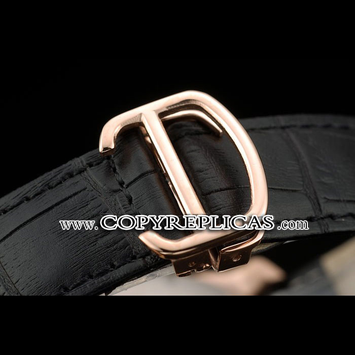Movement : Kinetic (Automatic) Quality : Japanese Miyota Case : 18k rose-gold plated case Back : Brushed stainless steel screwed down back with transparent center and Cartier inscriptions Bezel : 18k rose-gold plated bezel Crown : Sapphire crystal stud octagonal rose-gold plated crown placed on a long oblong pedestal Bracelet : Cartier heat embossed black crocodile leather strap with rose-gold plated buckle clasp Band Type : Leather Glass : Sapphire Crystal Color : Black Dial Color : Black Gender : Men Diameter : 49 x 43 mm Bracelet Length : 200 x 23 mm Case Thickness : 13 mm Shipping Size : Small