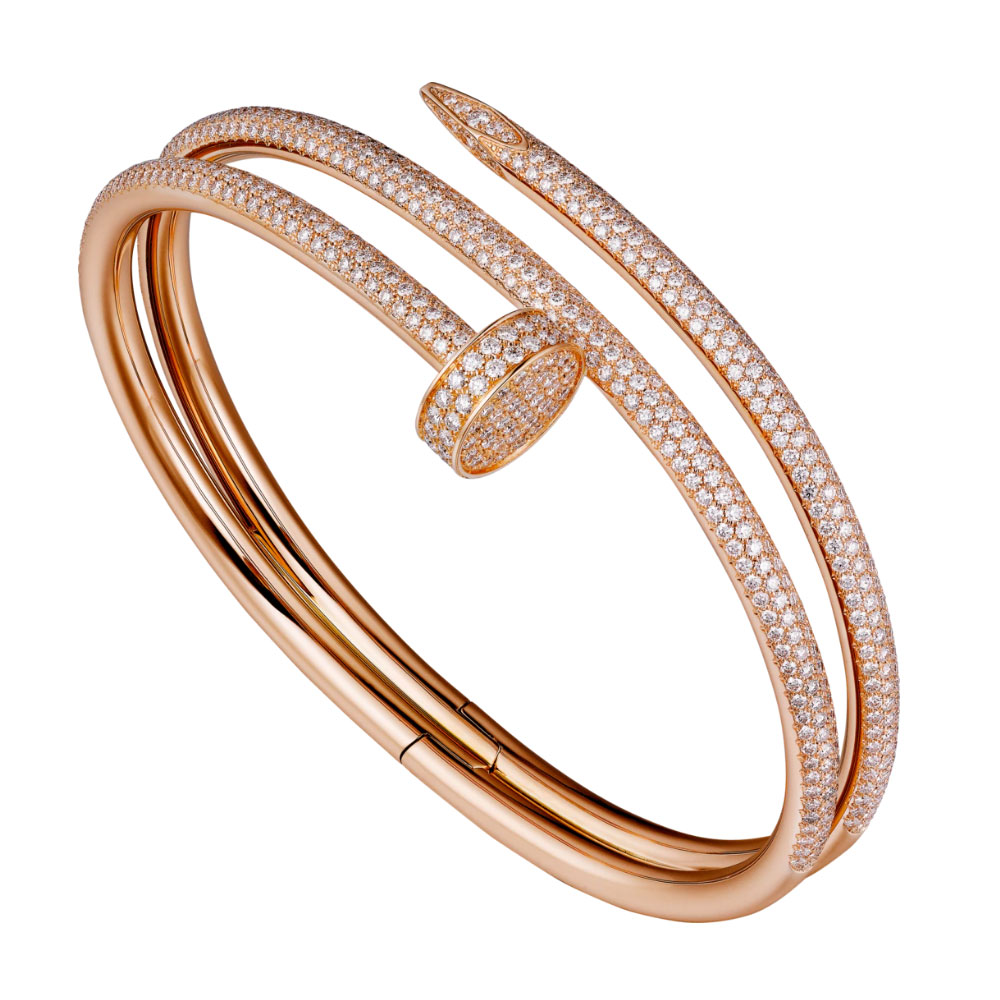 Juste un Clou bracelet. 18K rose gold. set with 624 brilliant-cut diamonds totaling 3.61 carats. Width: 7 mm.