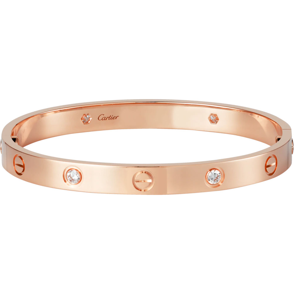 Love bracelet. 18K rose gold. set with 4 brilliant-cut diamonds totaling 0.42 carats. Sold with a screwdriver. Width: 6.1mm.