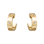 Love earrings. 18K yellow gold. each set with 1 brilliant-cut diamond