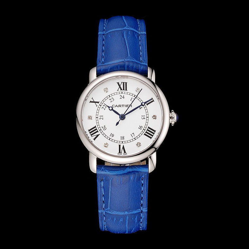 Movement : Quartz (Battery) Quality : Japanese Miyota Case : Polished stainless steel case Back : Screwed-in polished stainless steel back with Cartier engravings Bezel : Polished stainless steel bezel Crown : Blue stone stud polished stainless steel cutwork crown Bracelet : Cartier heat embossed blue crocodile leather strap with polished stainless steel fold-over clasp Band Type : Leather Watch Clasp : Flip Clasp Glass : Sapphire Crystal Color : Blue Dial Color : White Gender : Women Diameter : 39 x 33 mm Bracelet Length : 195 x 18 Case Thickness : 9 mm Shipping Size : Small