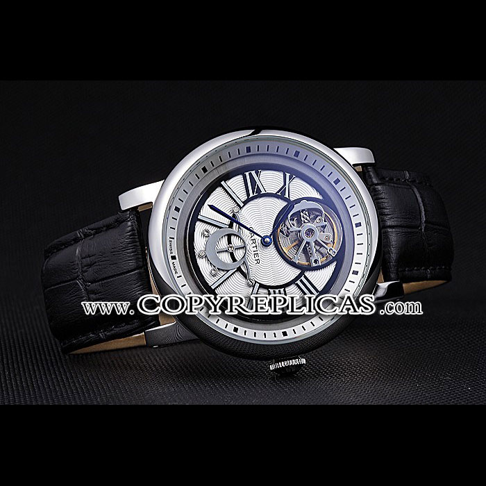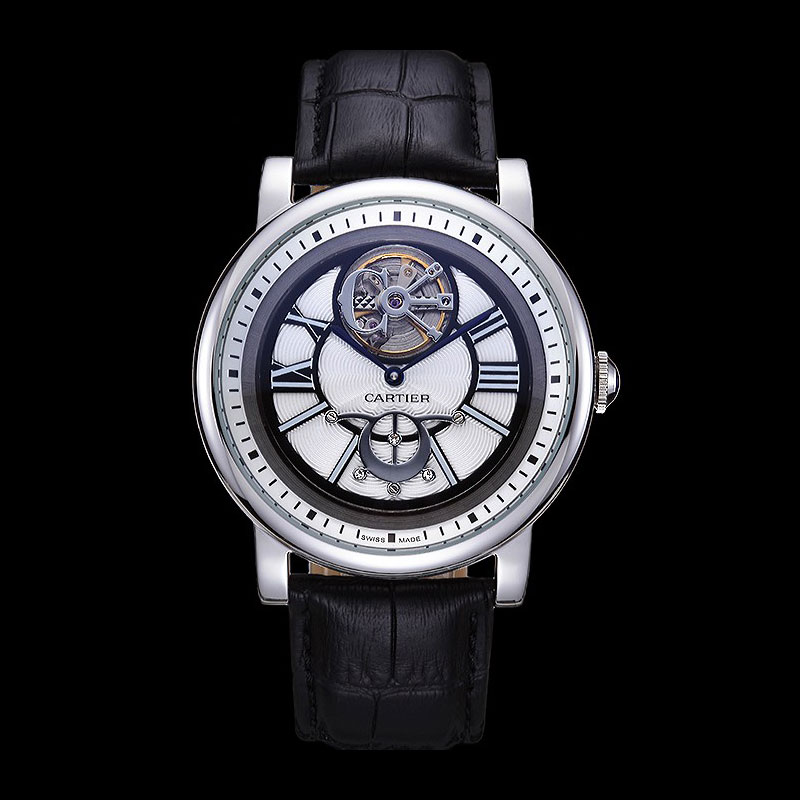 Movement : Kinetic (Automatic) Quality : Japanese Miyota Case : Polished stainless steel case Back : Polished stainless steel screwed down back with transparent mechanics revealing center and Cartier inscription Bezel : Polished stainless steel bezel Crown : Sapphire embedded polished stainless steel cutwork crown Bracelet : Cartier heat embossed black crocodile leather strap with polished stainless steel fold-in clasp Band Type : Leather Glass : Sapphire Crystal Color : Black Dial Color : White Gender : Men Diameter : 51 x 45 mm Bracelet Length : 200 x 23 mm Case Thickness : 15 mm Shipping Size : Small