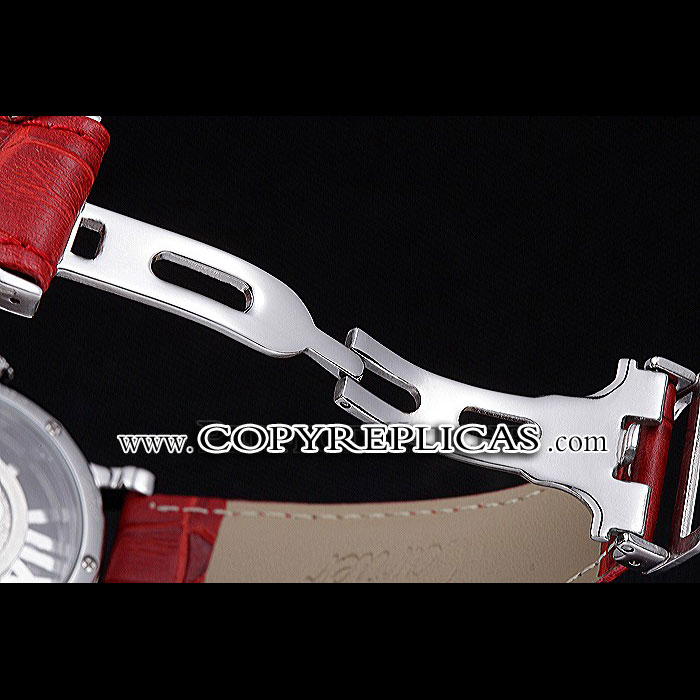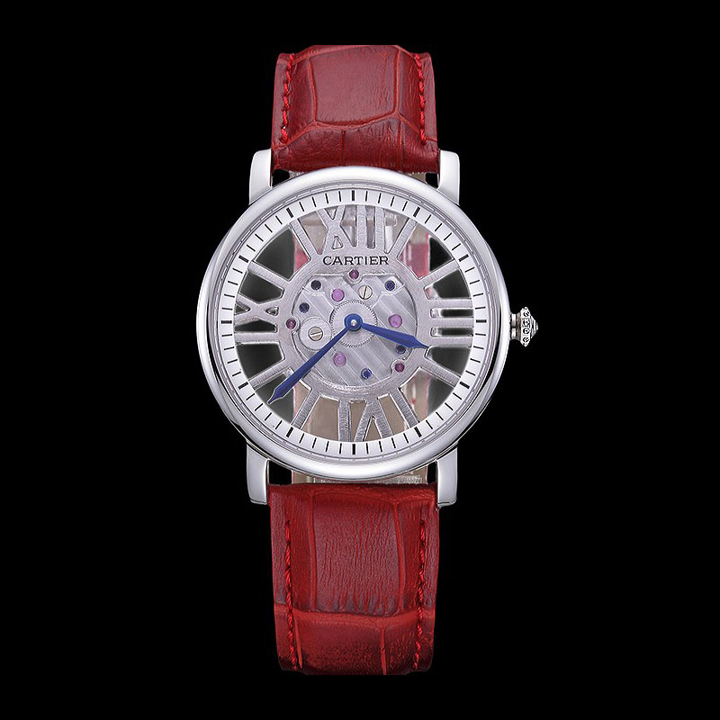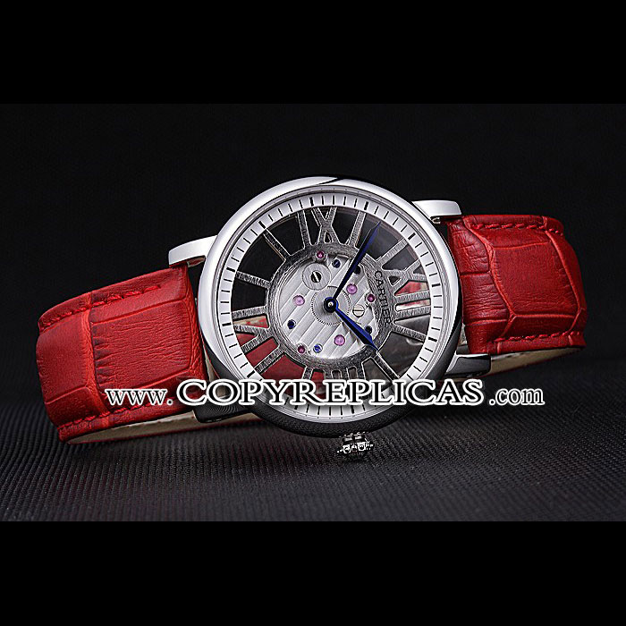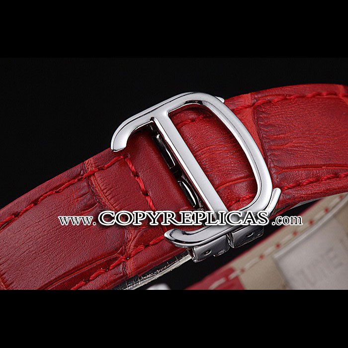 Movement : Quartz (Battery) Quality : Japanese Miyota Case : Polished stainless steel case Back : Polished stainless steel screwed down back with transparent mechanics revealing center and Cartier inscription Bezel : Polished stainless steel bezel Crown : Diamond stud polished stainless steel cutwork crown Bracelet : Cartier heat embossed red crocodile leather strap with polished stainless steel fold-in clasp Band Type : Leather Glass : Sapphire Crystal Color : Red Dial Color : Silver Gender : Women Diameter : 44 x 38 mm Bracelet Length : 205 x 21 mm Case Thickness : 9 mm Shipping Size : Small