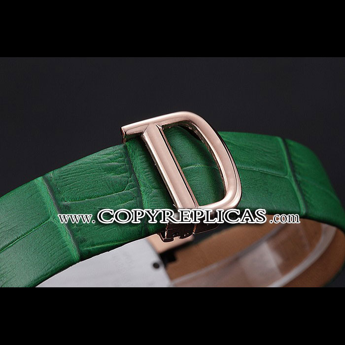 Bracelet : Cartier heat embossed green crocodile leather strap with 18k rose-gold plated fold-in clasp