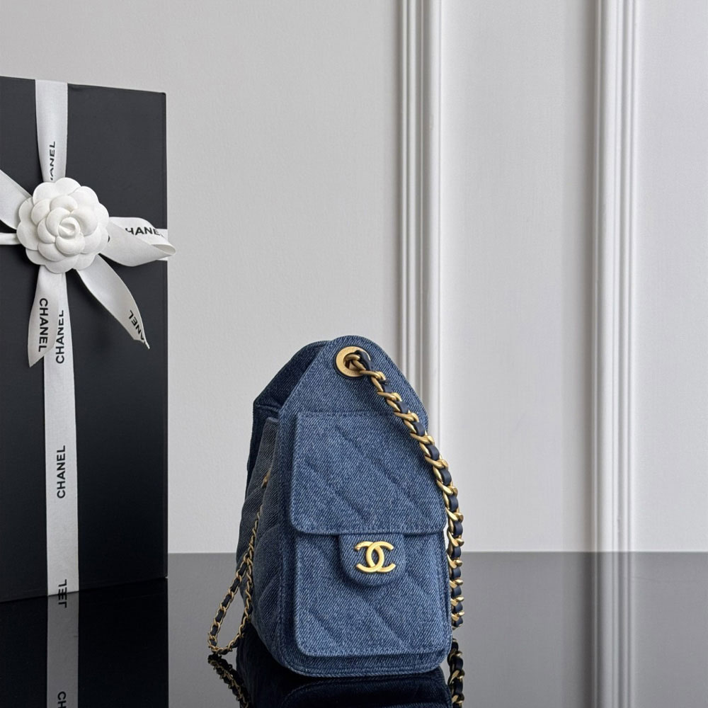 Chanel 25 mini handbag Washed denim gold-tone metal AS5631 B23556 U7740