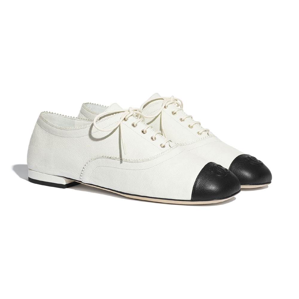 Chanel Calfskin White Black Lace Ups G36483 X56055 K2597