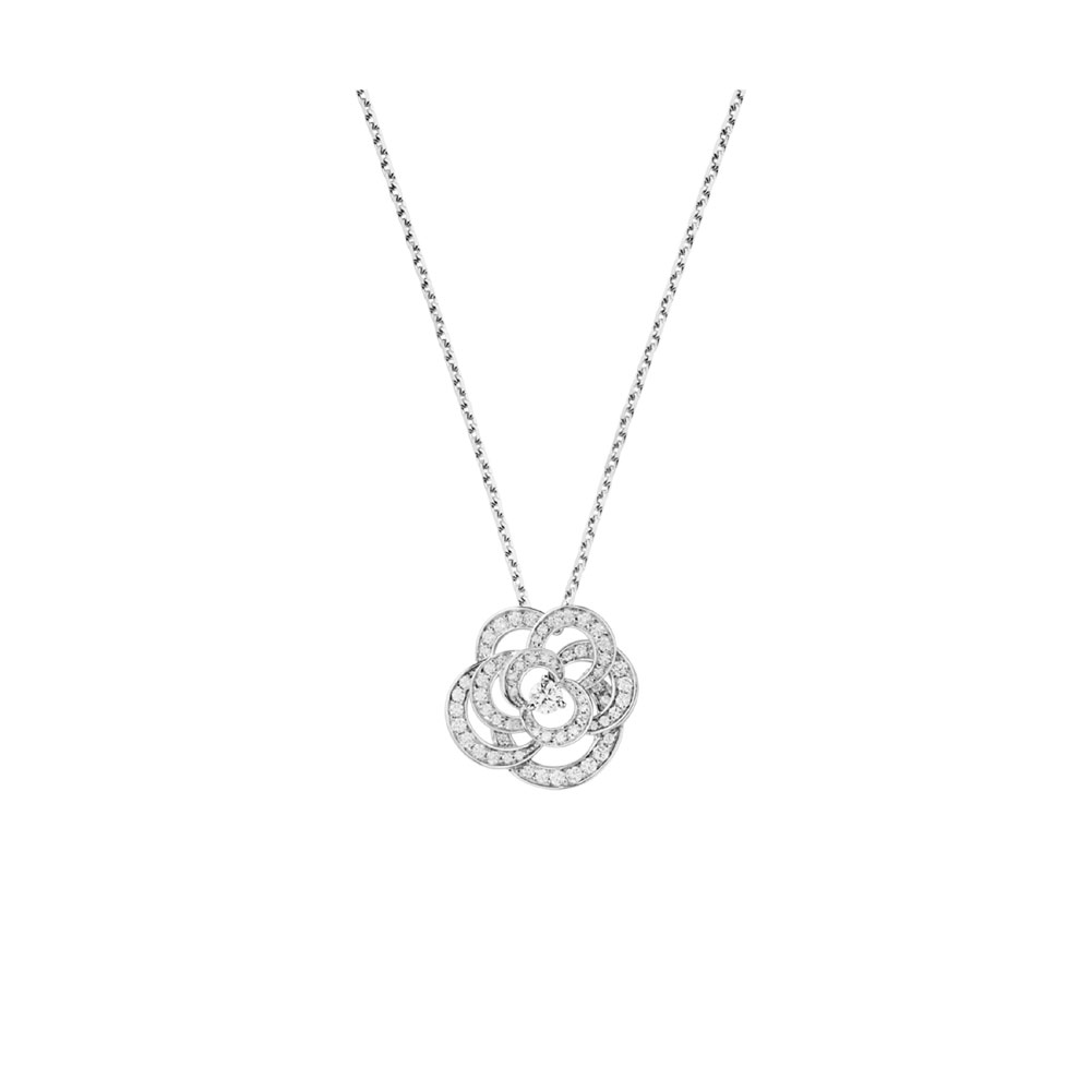 Fil de Camelia necklace Small version. 18K white gold. diamonds