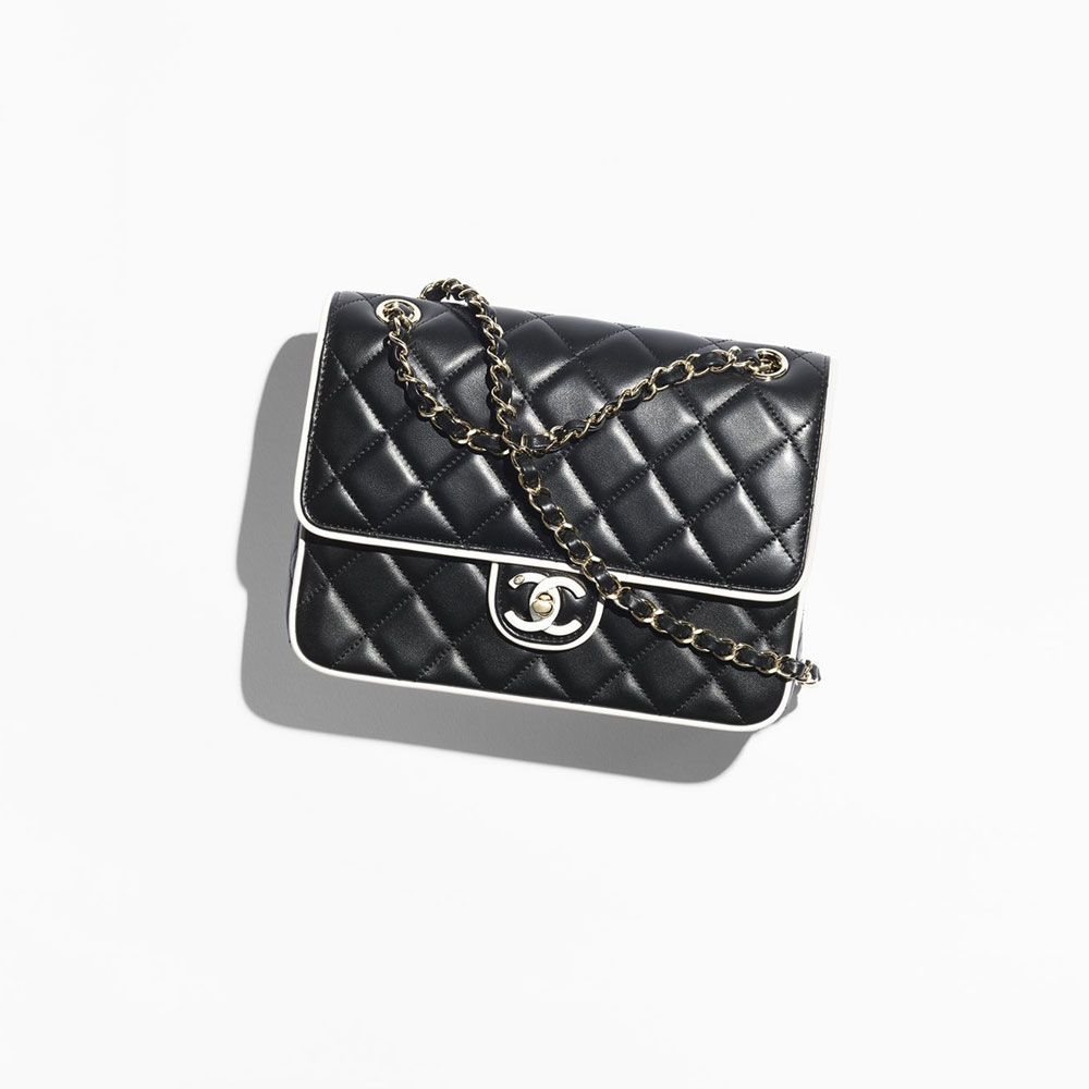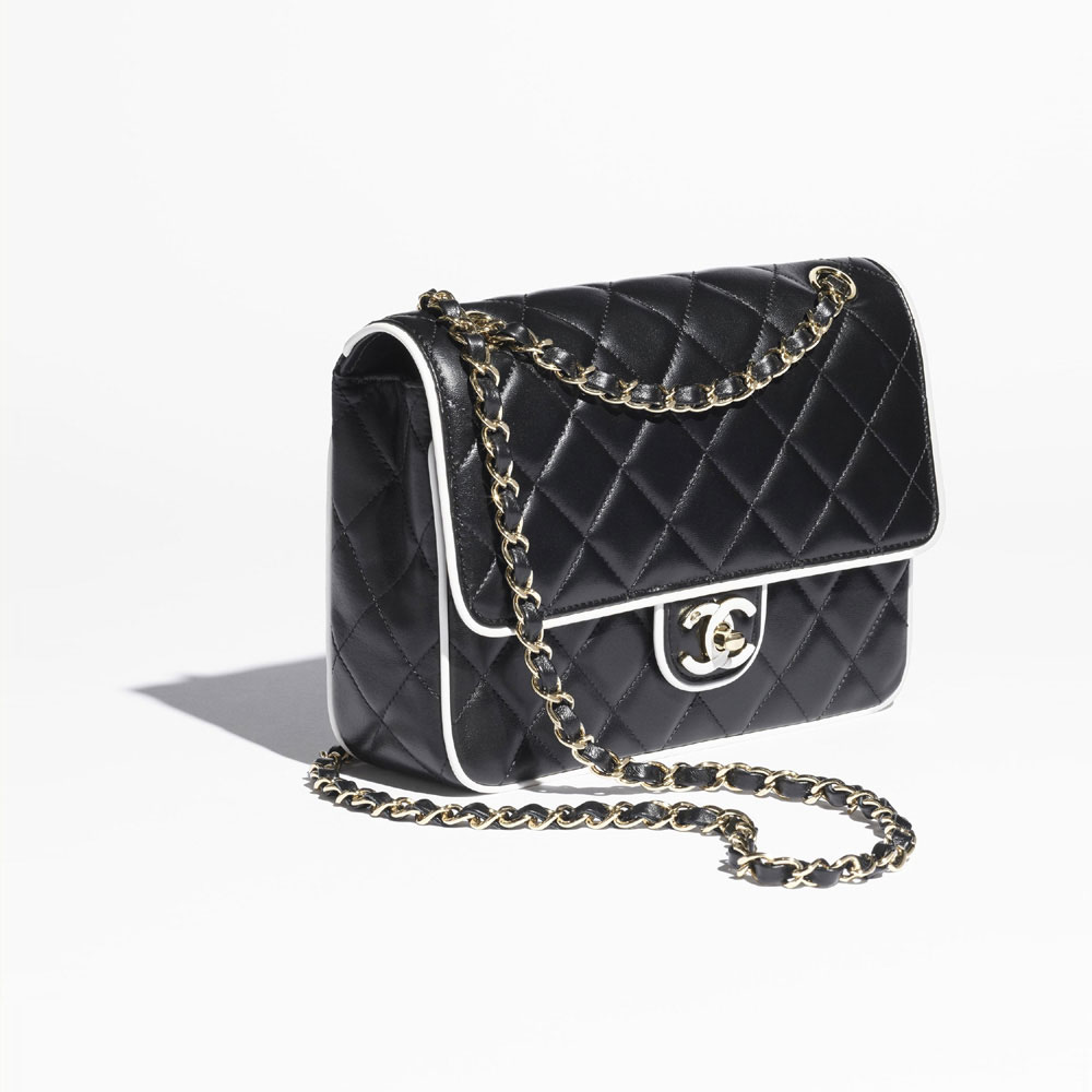 Chanel Flap Bag Lambskin in Black & White: A timeless Chanel quilted bag reimagined in contrasting hues, crafted from supple lambskin and accented with gold-tone hardware. Perfect for elevating both casual and polished looks.
