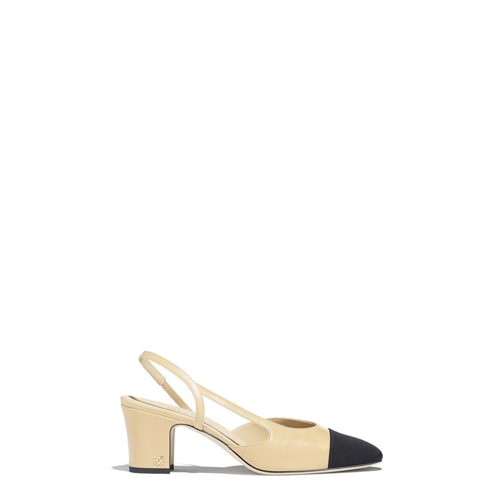 Chanel Goatskin Beige Black Slingbacks G31318 Y50006 C8378